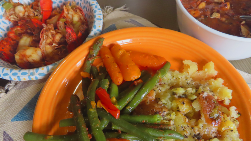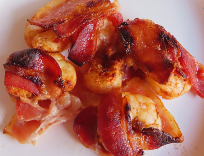 And I’m eating well. Too well. My husband is a great cook, and he’s been spoiling us both with awesome meals, like these bacon-wrapped shrimp…