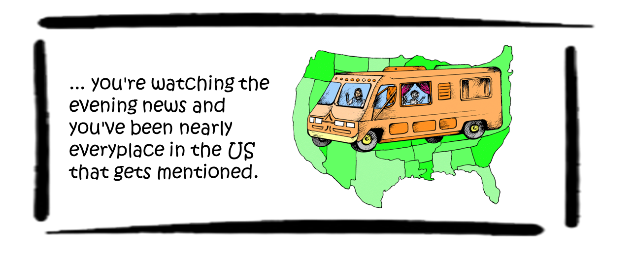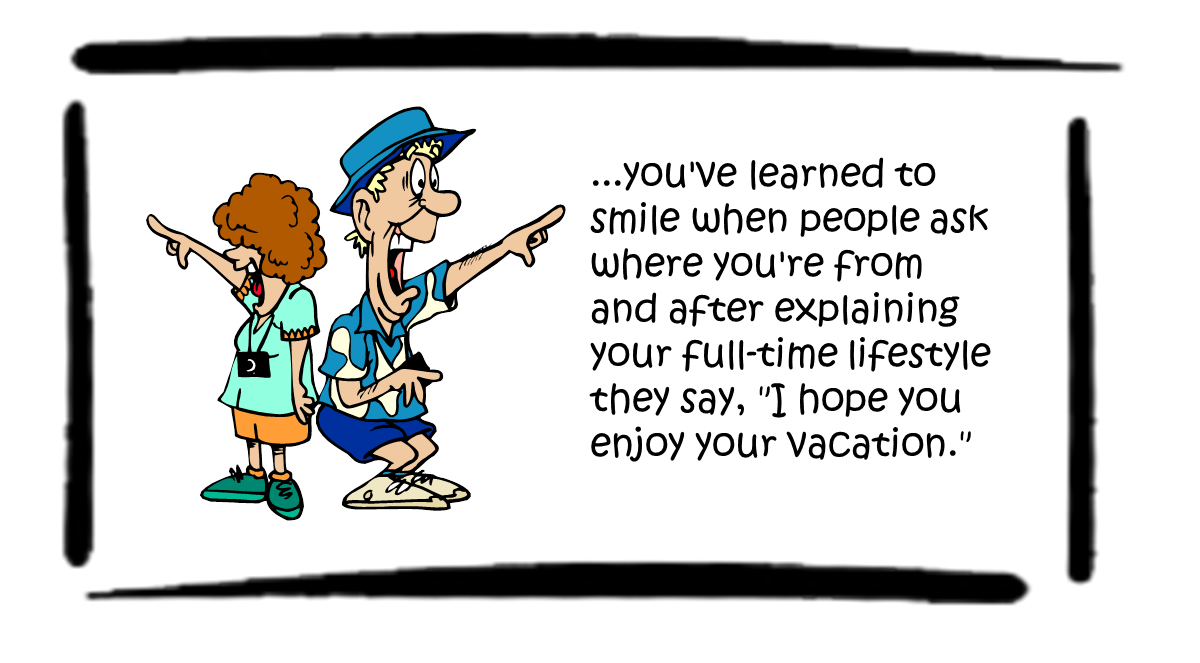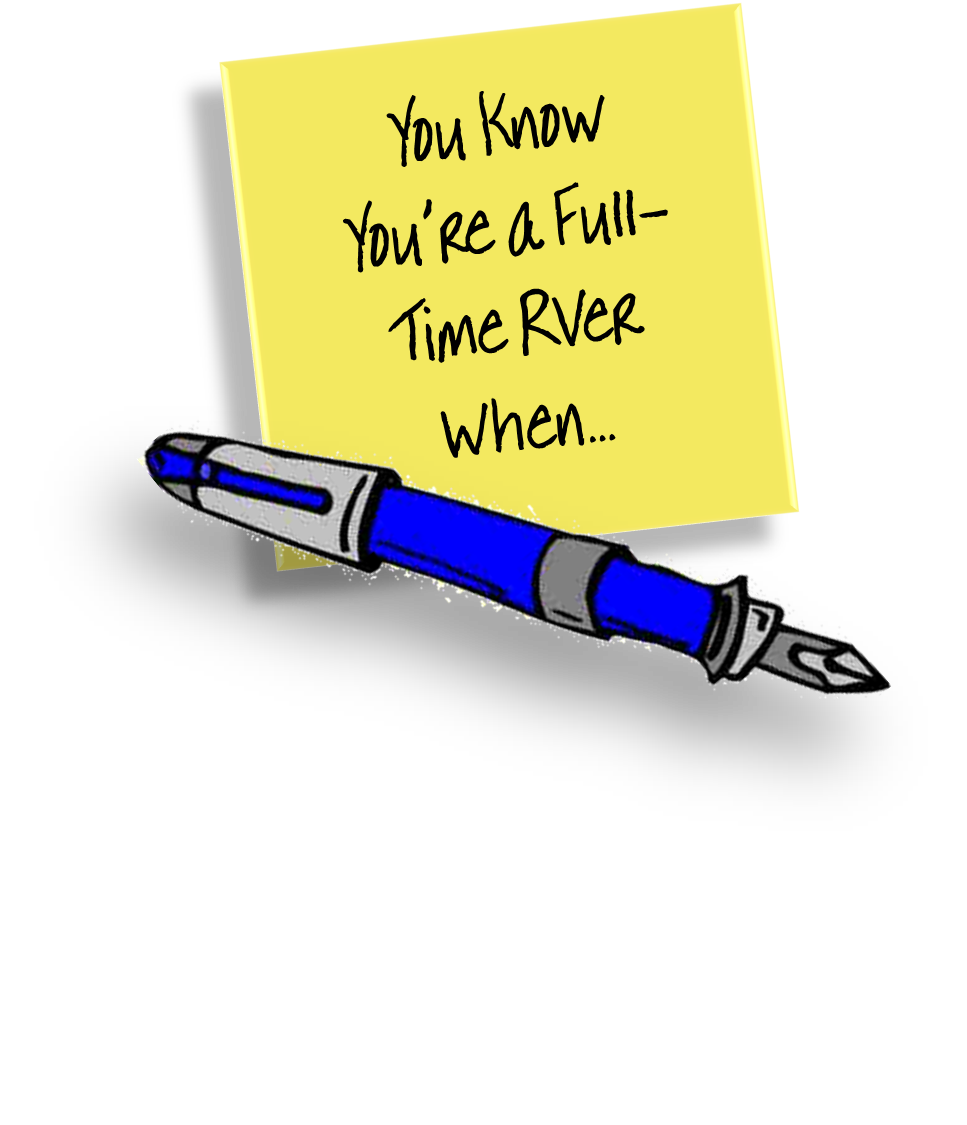 Over at my RV blog I’ve posted a few different lists titled, “You Know You’re a Full-Timer When…” and they’ve been so popular I decided to compile the lists here. Even if you’re not an RVer, you’ll get some idea of what it means to spend your days and nights living in a small space that moves. [Full-timer yourself? Have items you’d add to this list? Feel free to add your items in the comments section!]